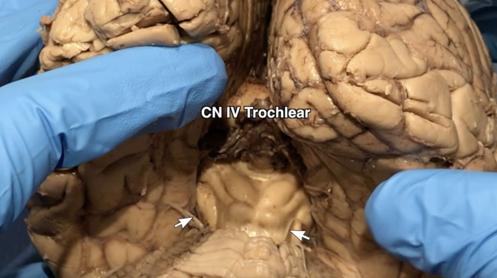 CN IV, the trochlear nerve, is indeed, one of the three nerves innervating the eye muscles and it involves both horizontal and vertical movement. There are three peculiar things about this nerve. It is the only cranial nerve which exits the brainstem dorsally. It is the only cranial nerve that crosses sides, and, unlike the others, is not prone to injury from vascular occlusions. In any case, originating from the midbrain, its blood supply would not be AICA. What does cause trochlear palsies are traumatic injuries and congenital abnormalities. Consider the other nerves or return to the case.